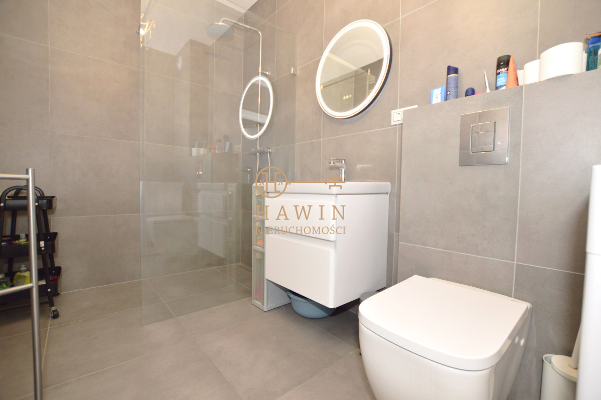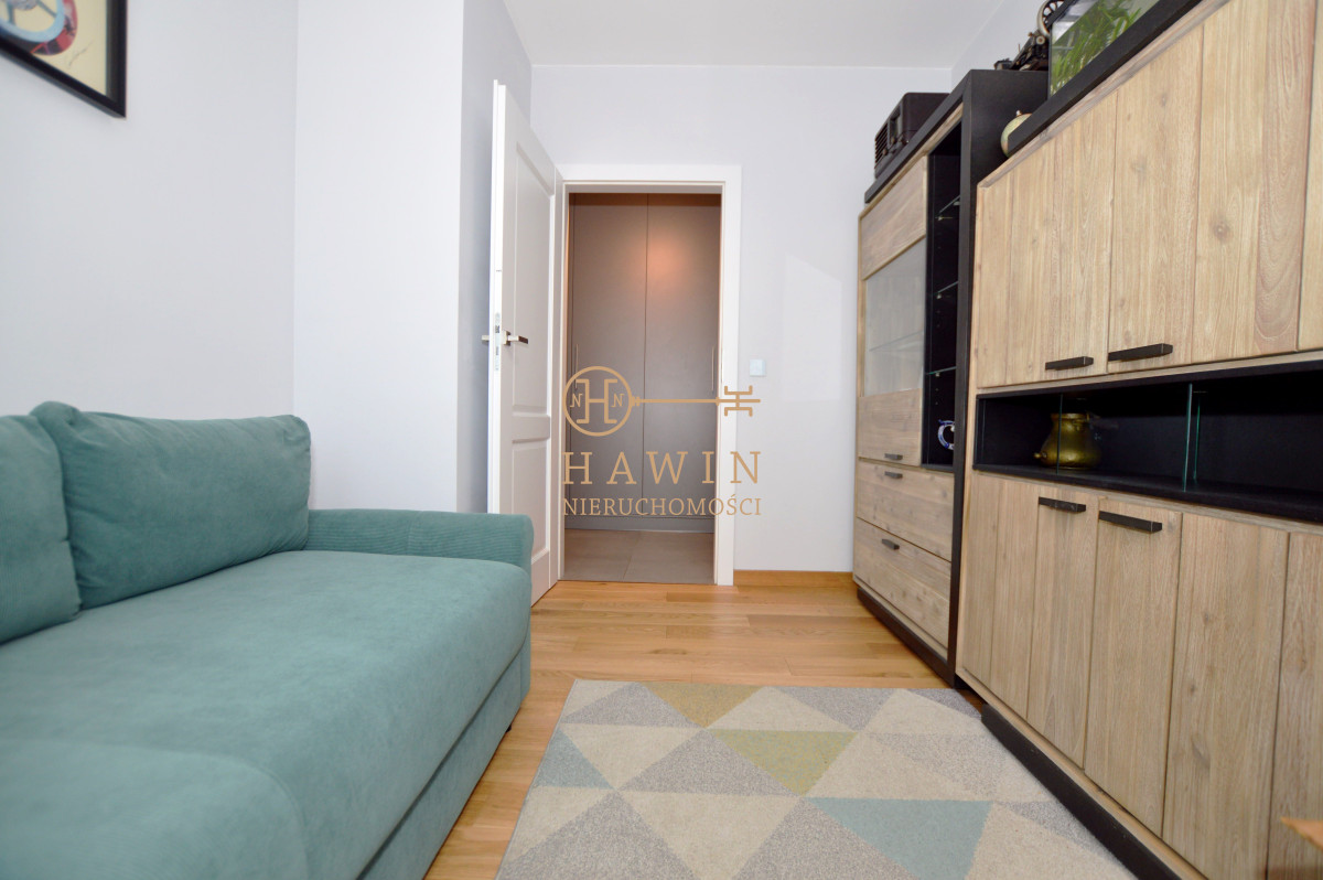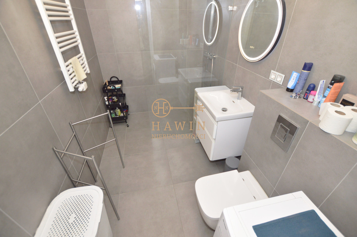 Mieszkanie wykończone jest w wysokim standardzie w pokojach podłogi drewniane w przedpokoju oraz w łazience trwały gres. Dodatkowym atutem przedpokoju jest duża, przestronna szafa, zapewniająca dużo miejsca do przechowywania. Lokal posiada również klimatyzację, która znacząco podnosi komfort użytkowania.